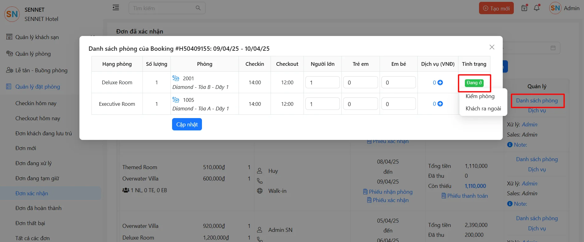 Chỉ những Booking ở trạng thái "Đã xác nhận" mới có tính năng xếp phòng cho Booking.
