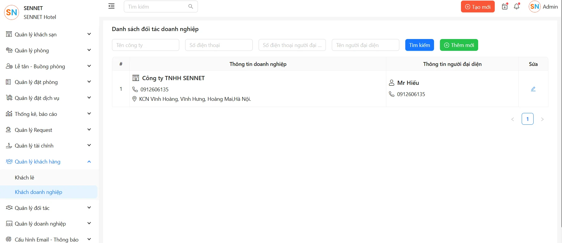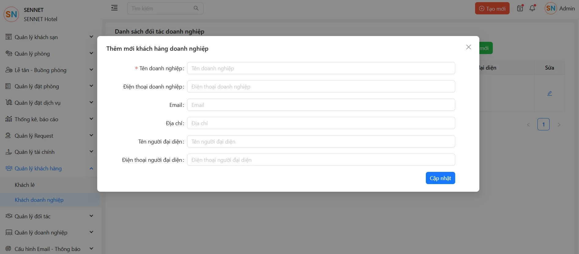 Click "Thêm mới" để thêm mới khách hàng doanh nghiệp: