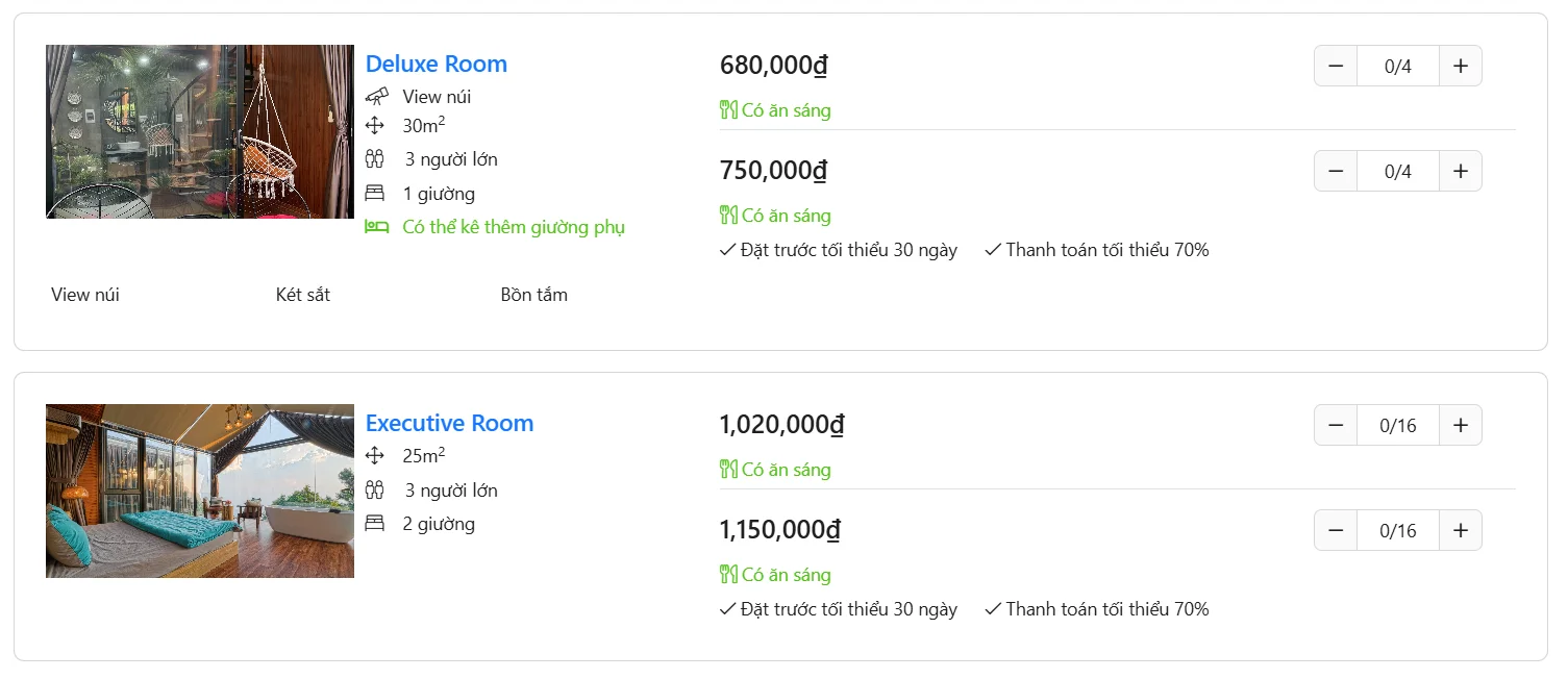 - Tại danh sách phòng sẽ hiển thị nhiều loại giá với các điều kiện đi kèm khác nhau để cho đại lý lựa chọn mức giá phù hợp với nhu cầu của khách hàng.
