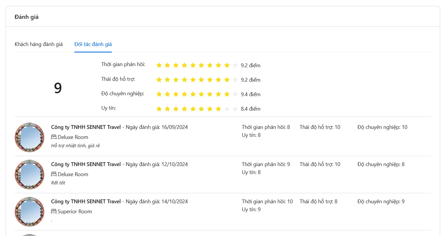 Đánh giá của đối tác: Là những nhận xét, đánh giá của đại lý du lịch dành cho khách sạn.
