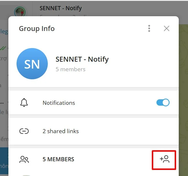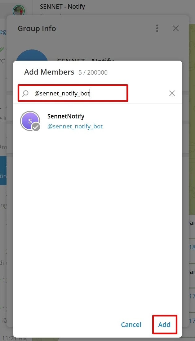 Bước 3: Thêm Bot thông báo tự động "SENNET Notify" vào nhóm chat.