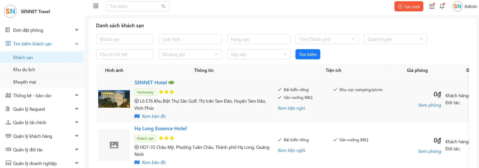 Các đại lý du lịch sử dụng hệ thống SENNET sẽ được tiếp cận với quỹ phòng của tất cả các khách sạn trong hệ thống, đồng thời có thể dễ dàng tìm kiếm và đặt phòng trực tiếp với các khách sạn trên hệ thống SENNET. Có 2 cách tìm kiếm khách sạn: